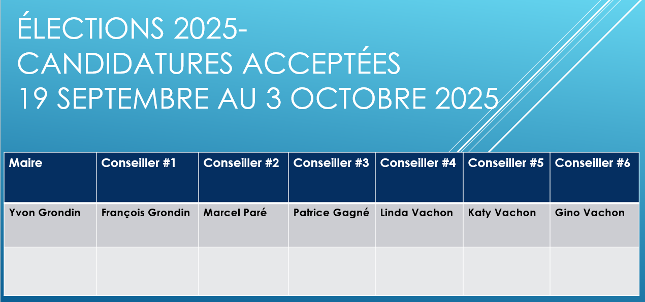**TOUS LES CANDIDATS ONT ÉTÉ ÉLUS PAR ACCLAMATION**