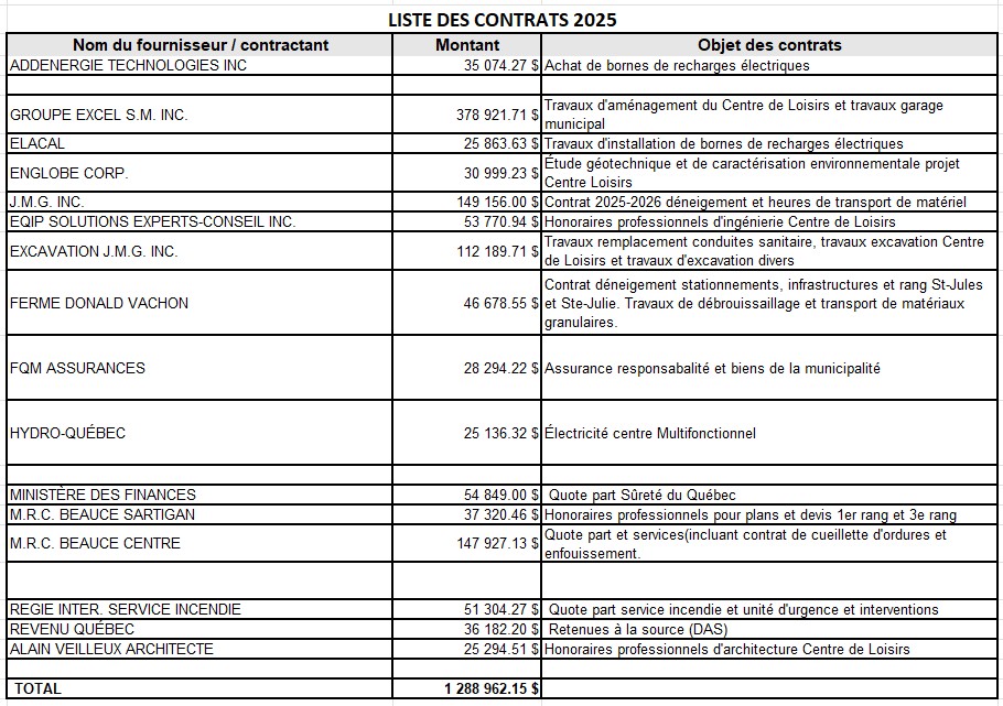 Contrats Municipalité St-Jules- SEAO